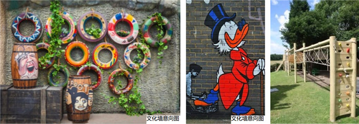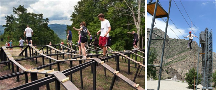 以懸壁長城為天然造景背景,將靠近長城保護區(qū)一側(cè)規(guī)劃設(shè)計為戶外拓展培訓(xùn)區(qū),戶外娛樂與競技相結(jié)合,寓教于樂,挑戰(zhàn)與協(xié)助能力的鍛煉,增加游樂活動的趣味性。游客可通過特定的拓展活動達到“磨練意志、陶冶情操、完善人格、熔煉團隊”的培訓(xùn)目的。