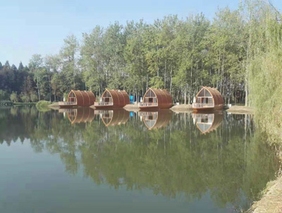 作為酒店客房,船屋已成為當下一種獨特的居住體驗,船屋結構采用木結構體系,結構構件由工廠預制后再到現場組裝,船屋主體由插入湖底淤泥中的鋼管樁提供支撐。施工現場無濕作業無揚塵,清潔簡單高效,是保護生態環境的更佳建造方式。
